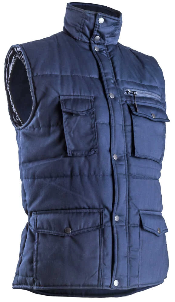 POLENA KÉK MELLÉNY: 35% pamut, 65% poliészter anyag, kényelmes poliamid belső, mely a karöltőnél gumírozva van, 200 g/m² poliészter bélés, álló gallér két patenttal, derekat védő hosszított hátrész, egy belső és hét külső zseb, cipzáros plusz patentos záródás, szín: tengerkék (5POLB), EU szabvány: EN340