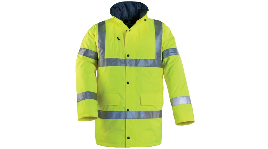 HI-WAY FLUO TÉLIKABÁT SÁRGA: teljesen vízhatlan (vízállóság: 4000 mm), Oxford poliészter, lélegző PU bevonattal (páraáteresztő képesség: 2000 mvp), 180 g/m² poliészter meleg bélés, selymes 190T taft belső, 5 cm széles fényvisszaverő csíkok, gallérba rejtett, állítható kapucni, kétutas cipzár patentos hajtókával, egy belső-, két külső zseb, gumis mandzsetta, szín: sárga, EU szabvány: EN340, EN343 (1.1), EN ISO 20471 (Cl 3), EN14058: 2.3.X.X.X | |