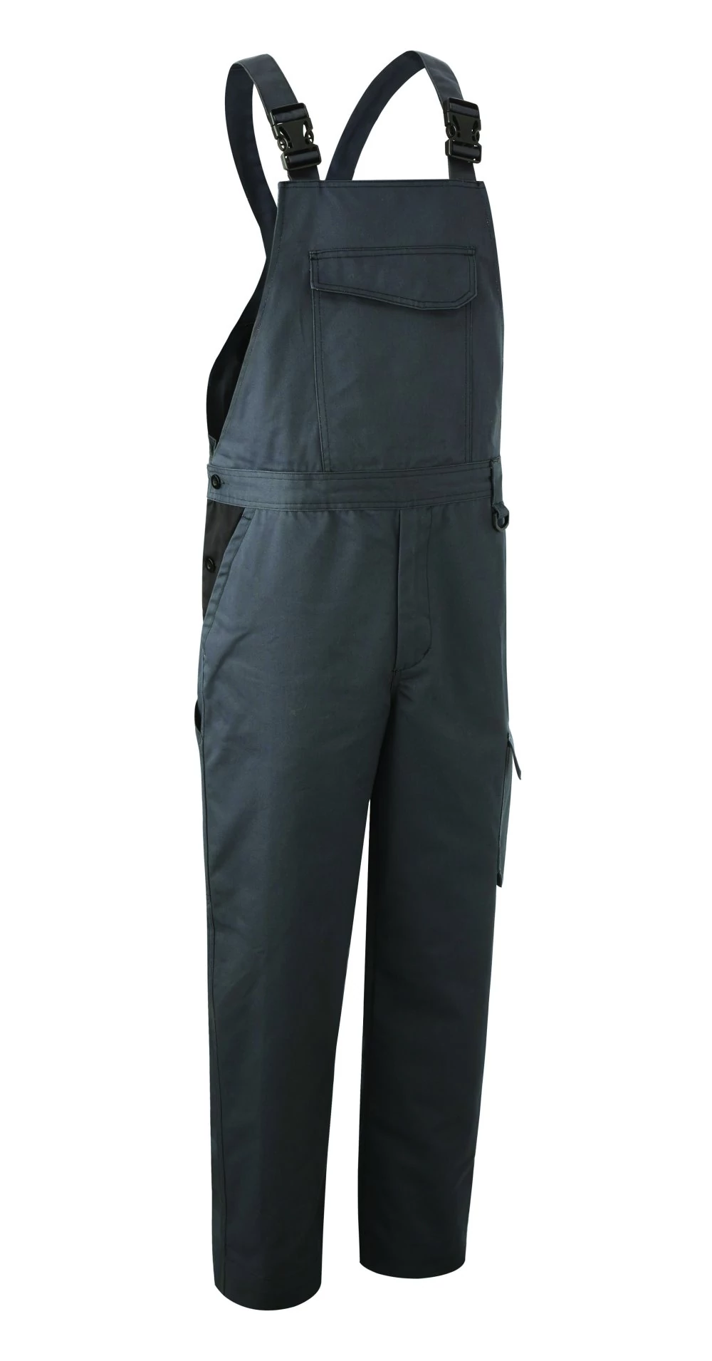 • 300 g/m2 vastag, 60% pamut + 40% poliészter kevertszálas alapanyag, regular szabású, vastag kopásálló mellesnadrág, ideális intenzív ipari használatra, állítható műanyag csatos vállpánt, övbújtatók, kényelmi betét a láb között, gombbal záródó, oldalt gumírozott és oldalgombos derék, megerősített térdrész, a száron még 5 cm-es lehajtási lehetőség, egy tépőzáras mellzseb, két bebújós oldalzseb, két farzseb, egy fedett cargo zseb, egy megerősített vonalzó zseb, műanyag kulcs- vagy kitűző tartó