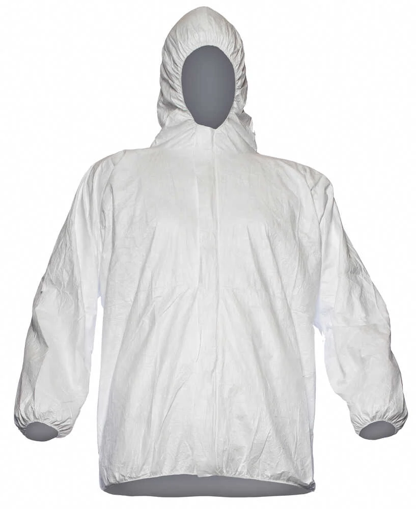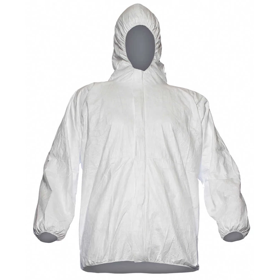 TYVEK DZSEKI: antisztatikus cipzáros dzseki, gumírozott ujjakkal, derékkal és kapucnival, méret: M, EU szabvány: EN340