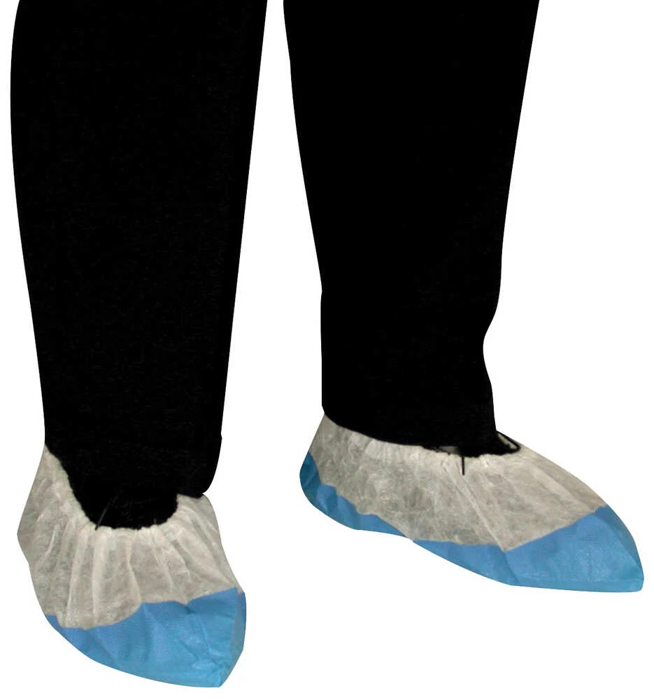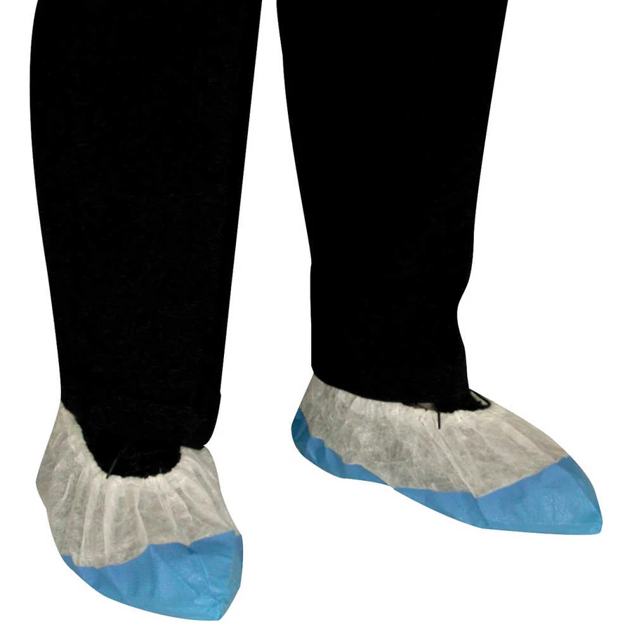 FEHÉR CSÚSZÁSGÁTLÓS CIPŐVÉDŐ: fehér polipropilén felső, kék, csúszásgátló, erősebb polietilén talppal, CSOMAGOLÁS: 50/1000 db