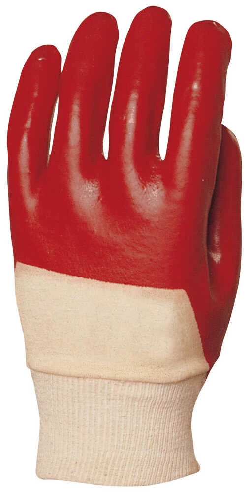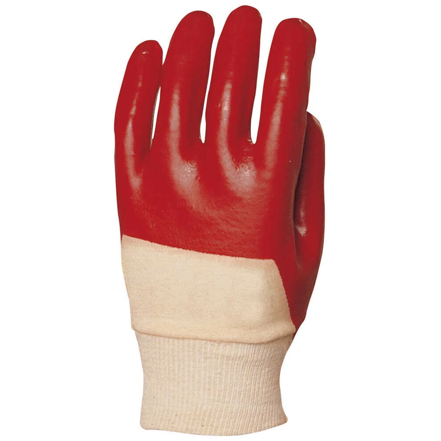 ÖKÖLCSONTIG MÁRTOTT PIROS PVC ECOLINE KESZTYŰ, pamutra ökölcsontig mártott piros PVC, szellőző hátrész, gumírozott mandzsetta, Ecoline® változat, MÉRET: 10-es, EU szabvány: EN420, EN388: 4121 (min. rendelési egység: 10 pár)