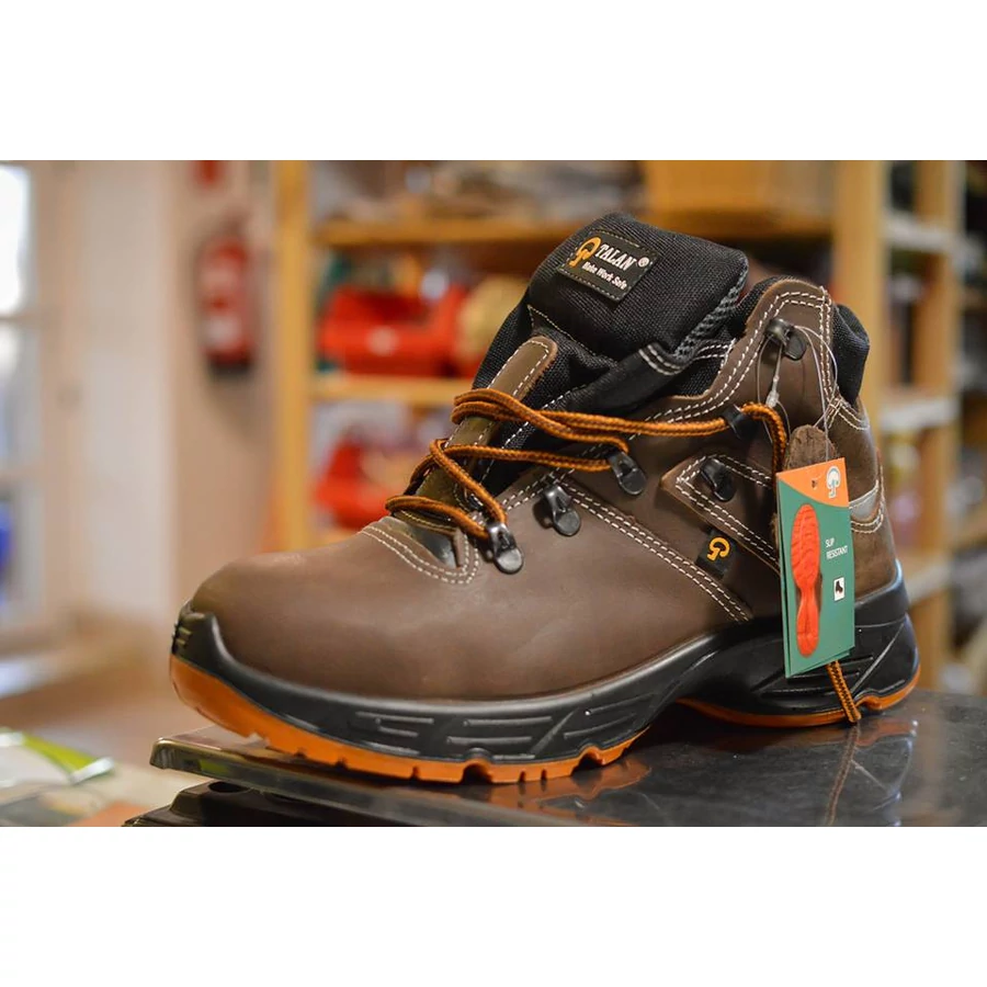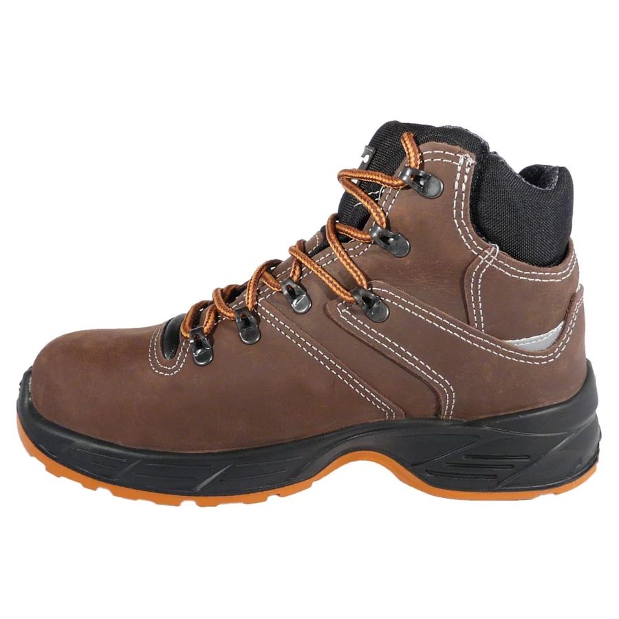 Styler (S3+SRC) munkavédelmi bakancs: könnyű, vízlepergető bőr felsőrész, barna színben, jólláthatósági betéttel. Olaj- és kopásálló, antisztatikus, SRC csúszásmentes PU talp. Kompozit kapli és fémmentes talplemez a maximális védelemért.